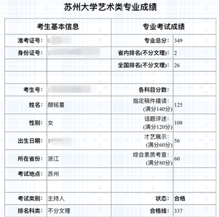 播音艺考丨印象包揽苏州大学播音主持前三名