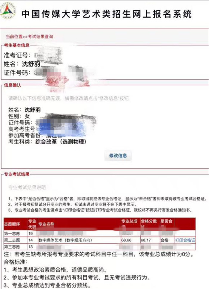 印象夺取中国传媒大学19张合格证!