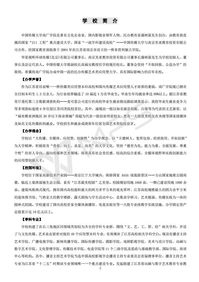 中国传媒大学南广学院2018年艺术类本科招生简章