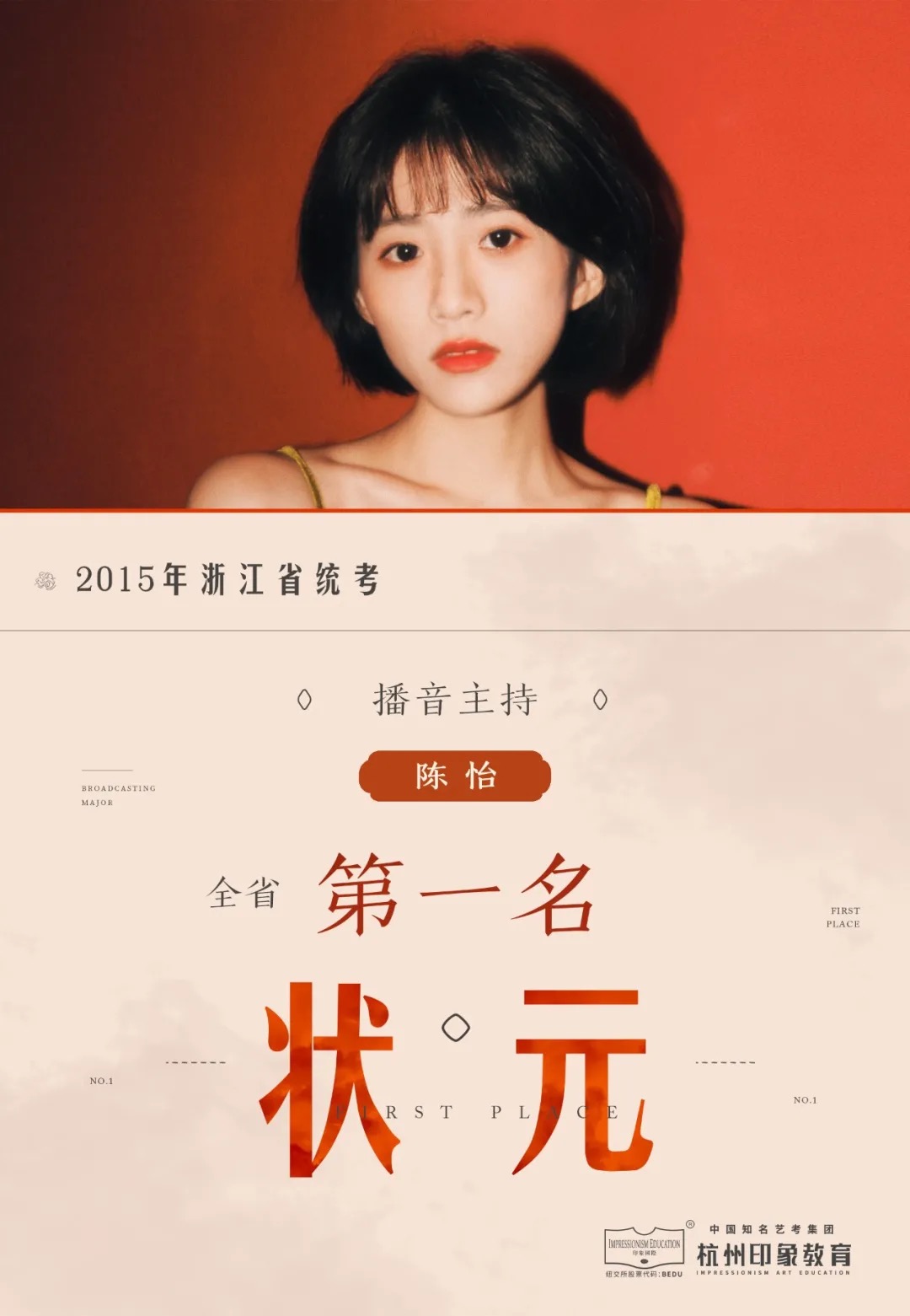 2016届印象播音生朱晓雨获得浙江省统考第一名