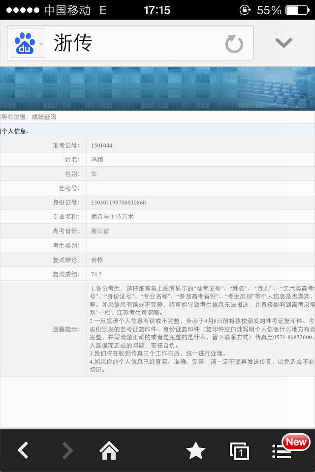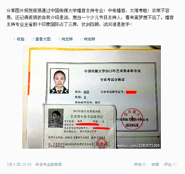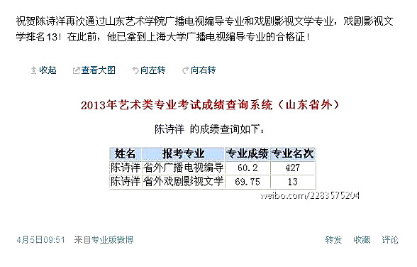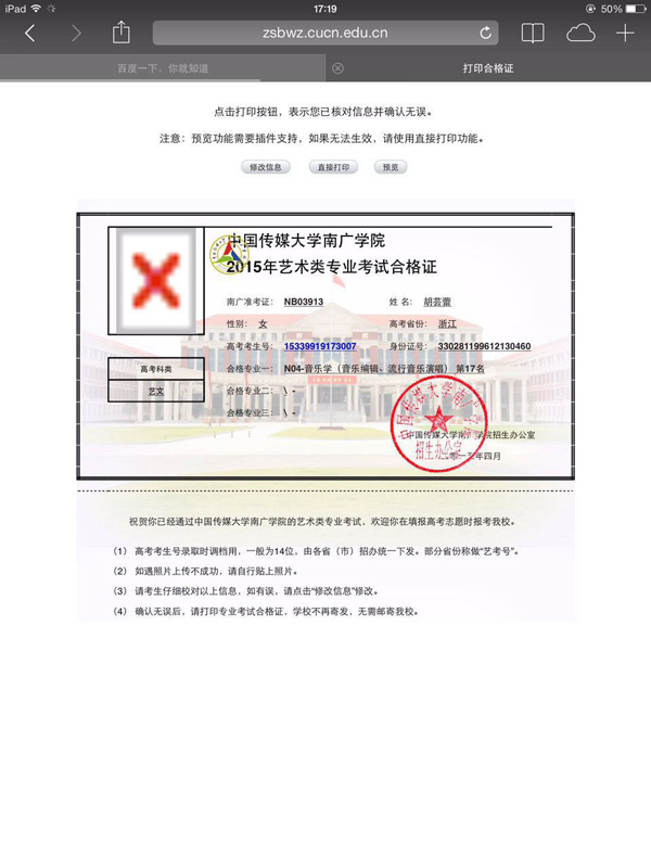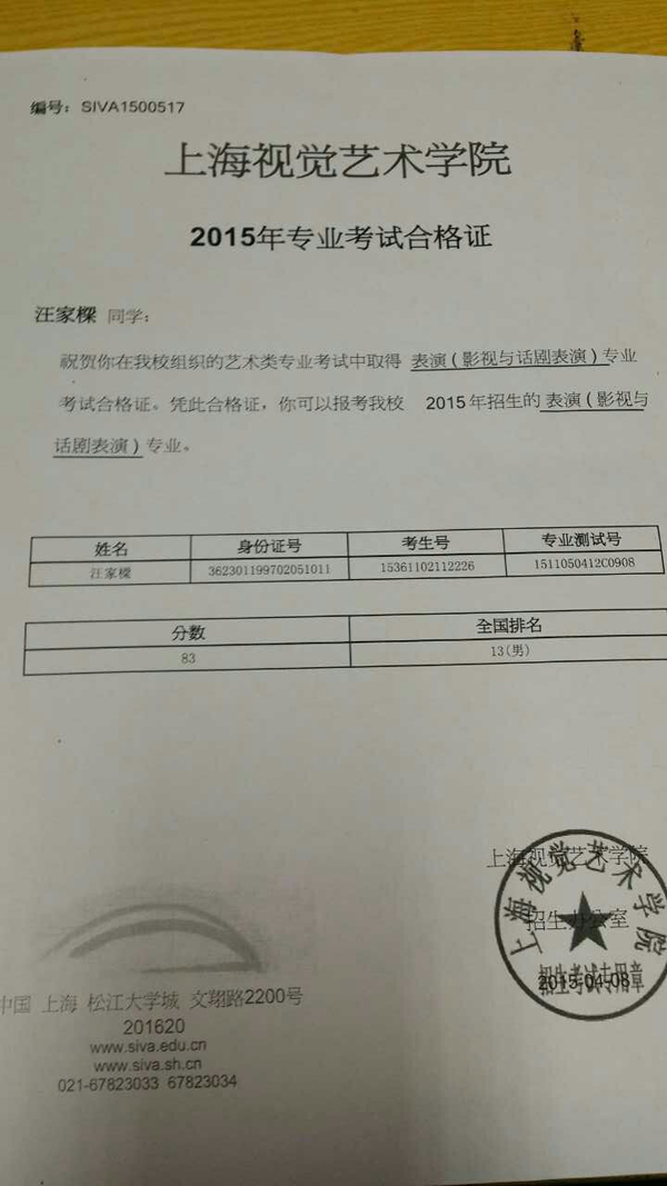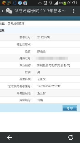 2015年艺考成绩截图