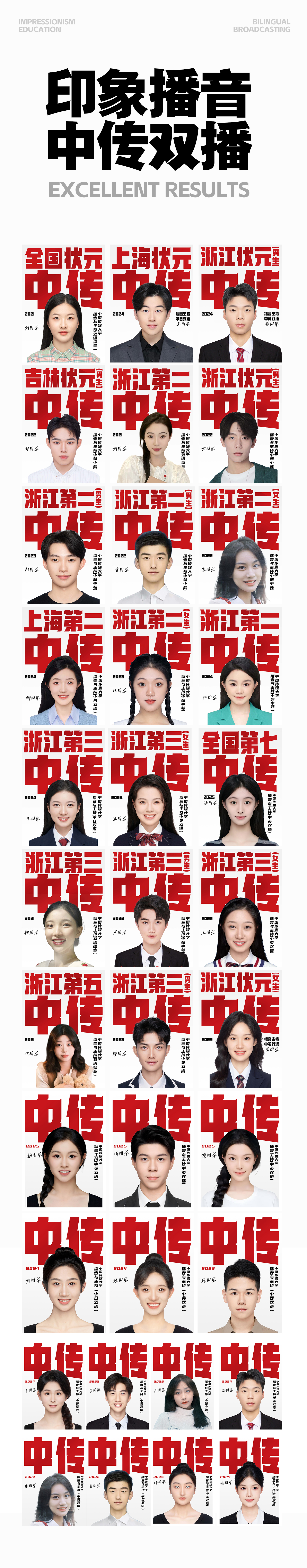 在2025届校考中,我们拿到了全国双播机构中位于顶尖梯队的成绩,豪夺中国传媒大学播音主持(中英双语)浙江省第一名,中传终试拿证率100%,浙传终试拿证率71%,初试通过率68%的头部数据。今年能否继续延续ACE双播的辉煌成绩,靠的不是空想,而是猛练!