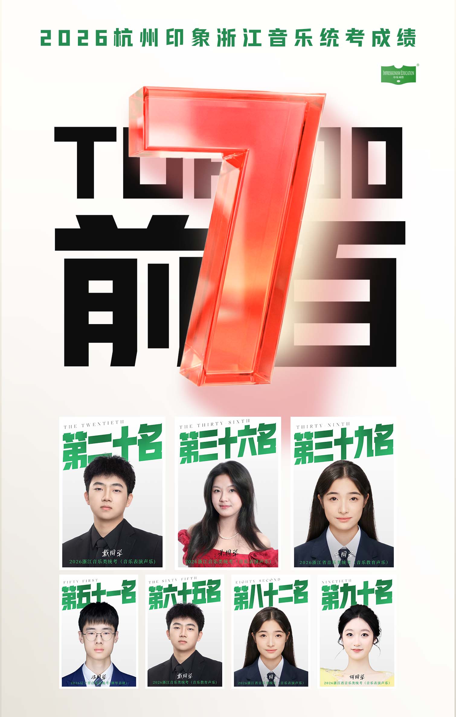 在本届音乐统考中,印象音乐学院交出了一份靓丽的答卷,全省前100占7席!基本乐科笔试满分20人,比去年增加7人!21席全省位次前10%,主副项80分以上21席高山仰止,声乐最高分89分一骑绝尘,器乐最高分88分稳定输出!