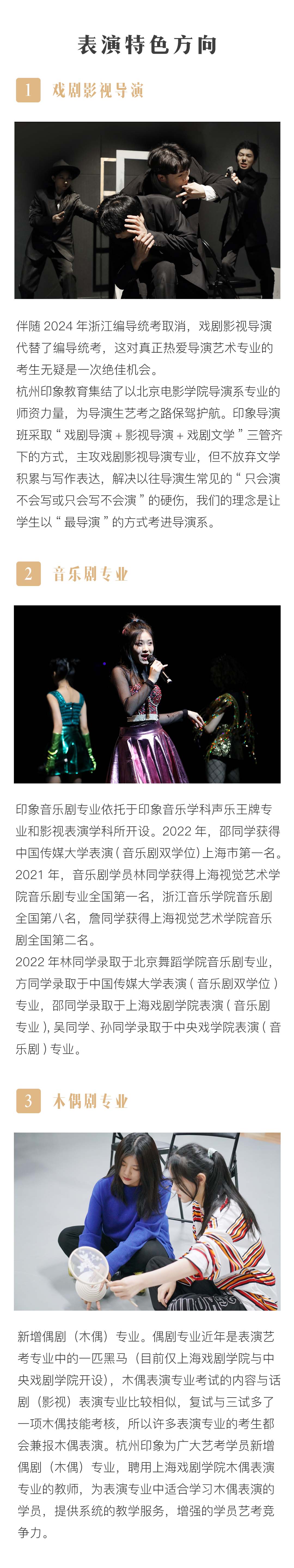 杭州印象艺术教育(杭州印象业务培训有限公司)是一所由留学德国及意大利海归艺术家创办,专业有播音、导演、表演、艺考、传媒、摄影、摄制、音乐培训等,学员遍及安徽、杭州、浙江、南昌、江苏、福州、南京等地区,浙江音乐学院培训、杭州编导培训、杭州表演培训、音乐高考培训、播音主持培训、音乐剧培训、戏剧影视文学培训、戏剧影视培训、传媒学院培训、影视表演培训、高考舞蹈培训、摄影摄制培训欢迎您来杭州印象艺术教育学习。
