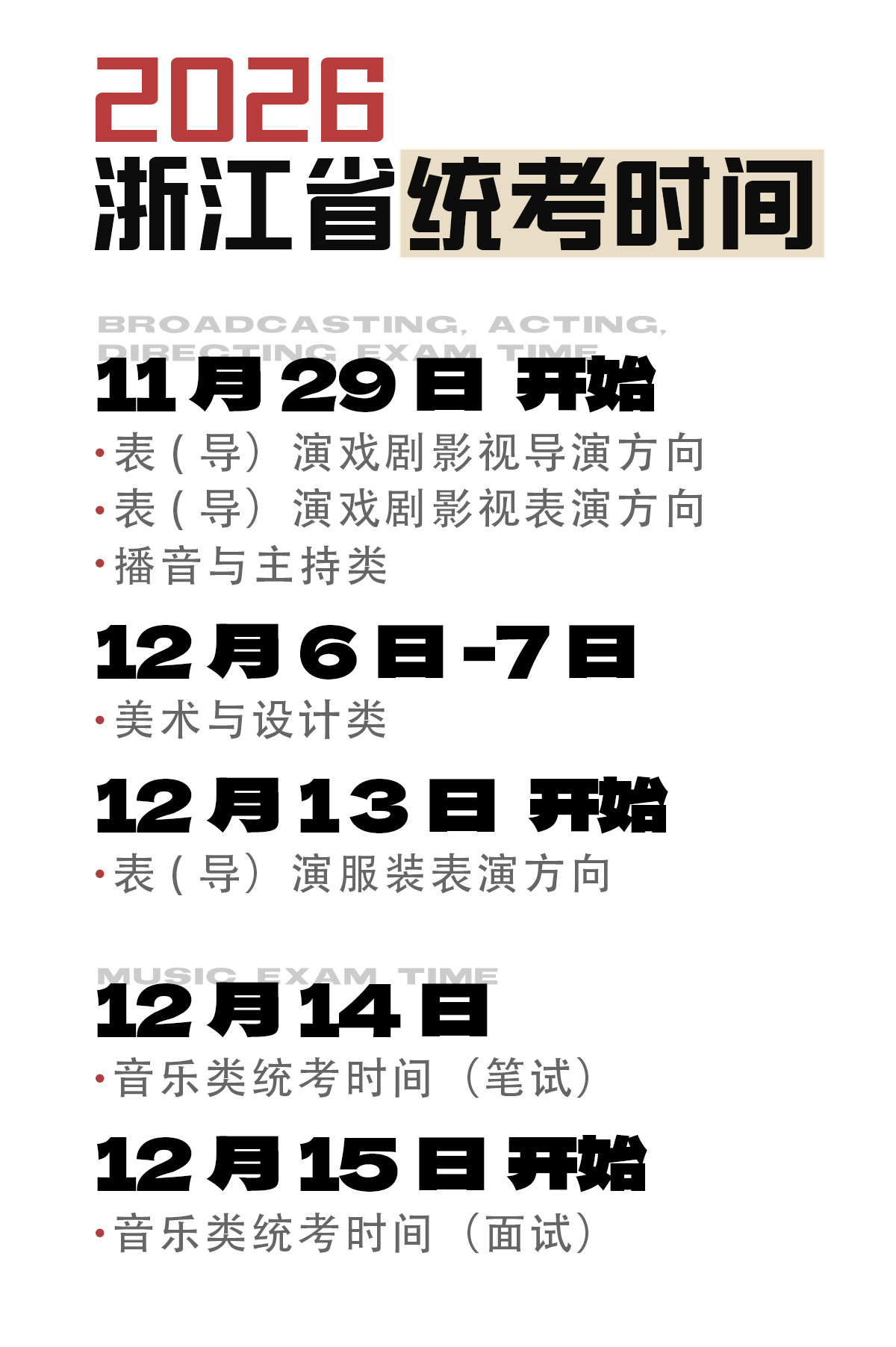 2026年浙江省传媒类统考,将于今年11月29日起开始进行,音乐类统考将于12月14日开始进行。受艺考改革影响,统考的重要性不言而喻,杭州印象教育已做好各方部署,统考考前深度班将于10月20日最后开班冲刺,我们静待学员归来。