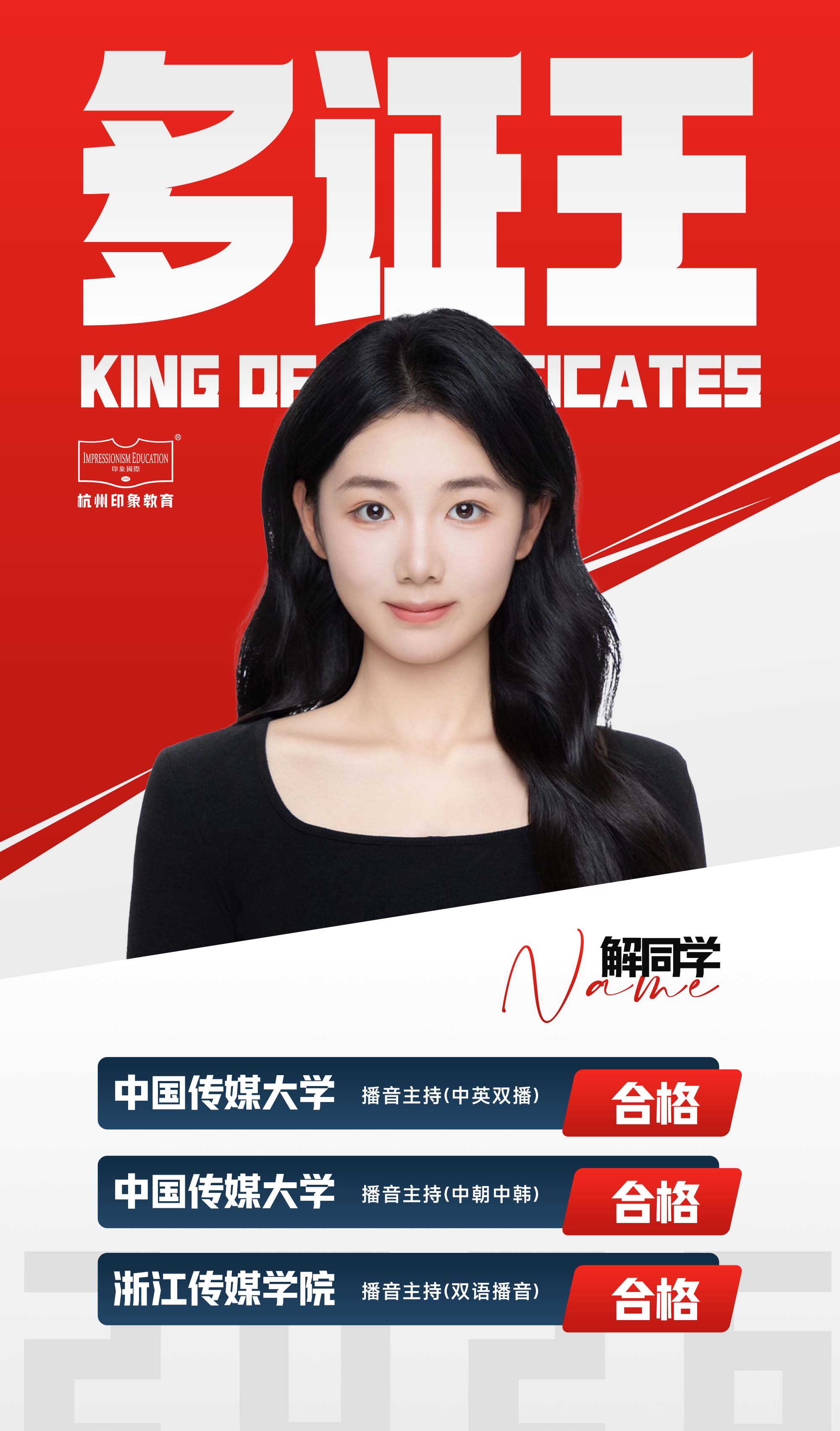 解同学:我高一的时候经常否定自己。暑假集训完回到学校,一直不被老师认可,怀疑自己到底适不适合播音。印象的师哥师姐、老师们一直在安慰我:“你真的很优秀,你一定要自信。”有一句很好笑的话就是:在学校里被否定,在印象再重新找回自信。